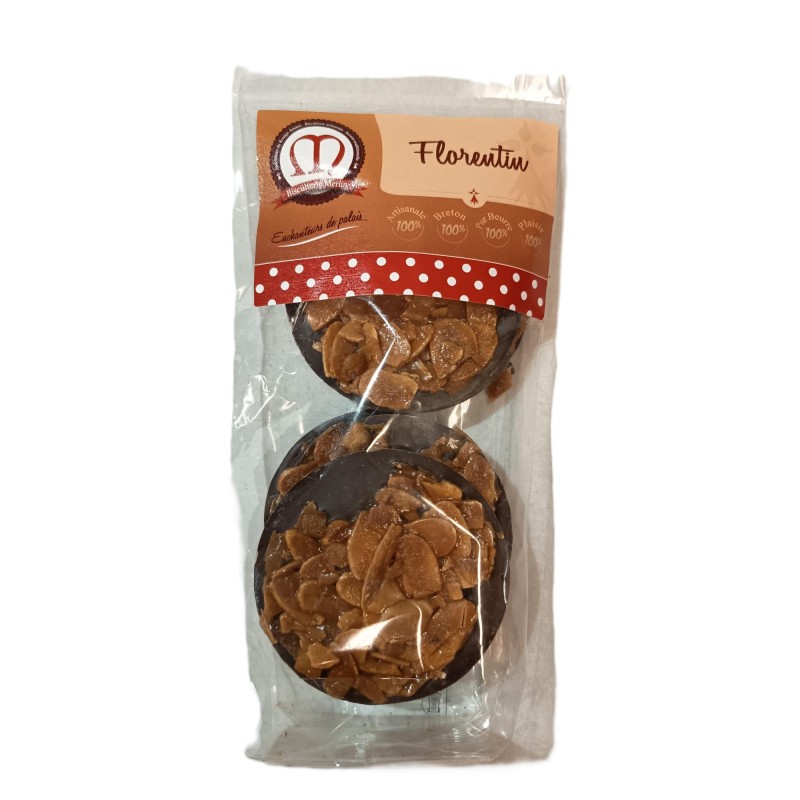 Amandes effilées caramélisées sur un médaillon chocolat noir